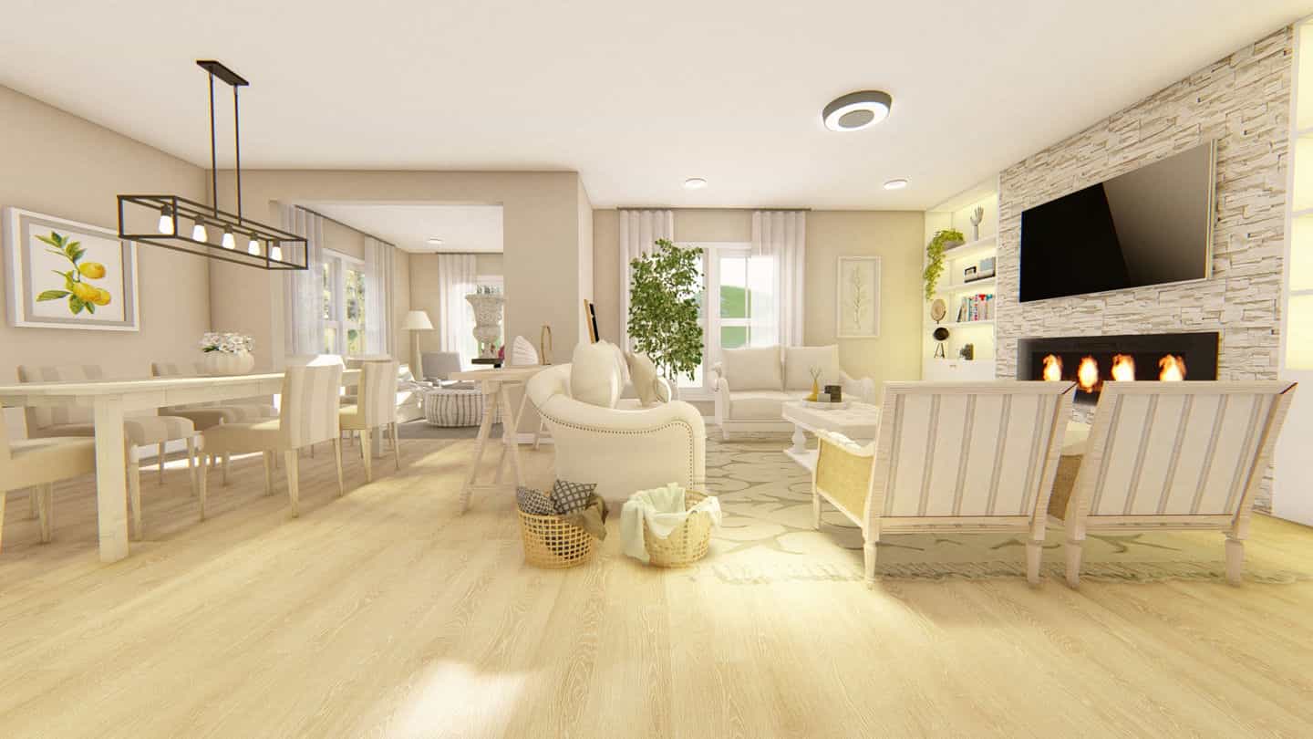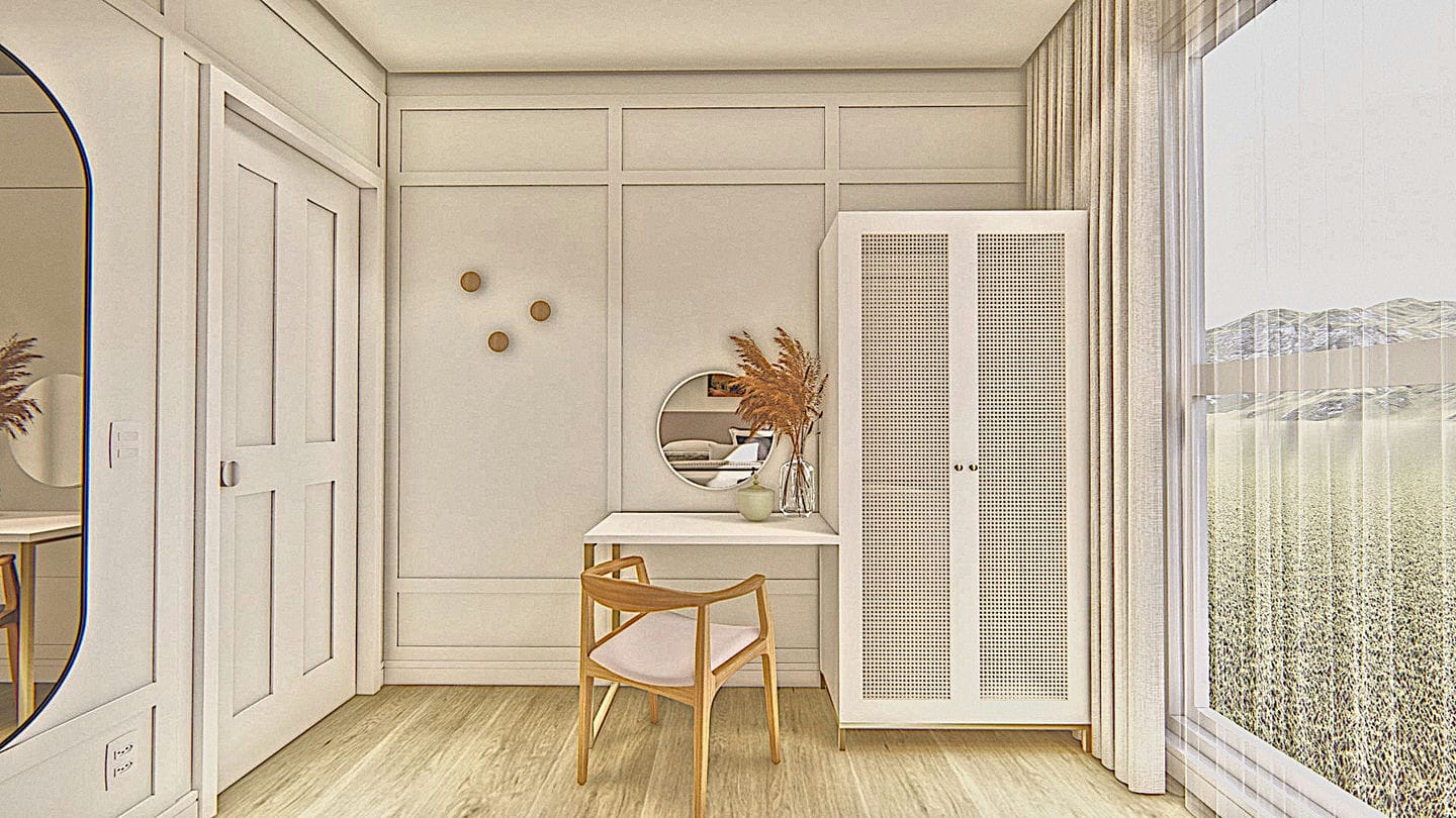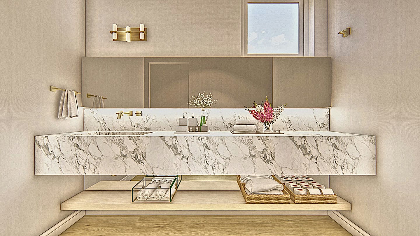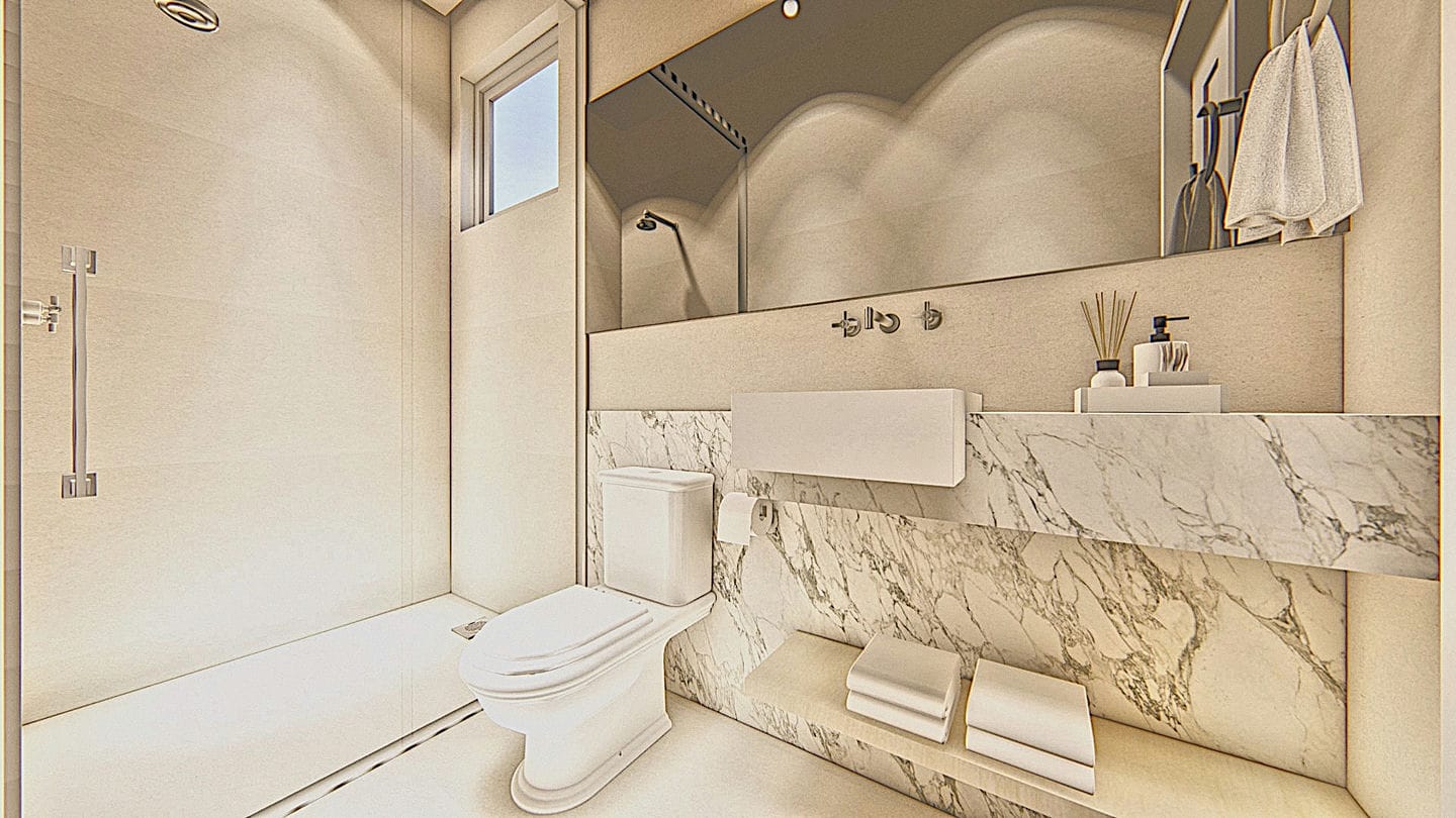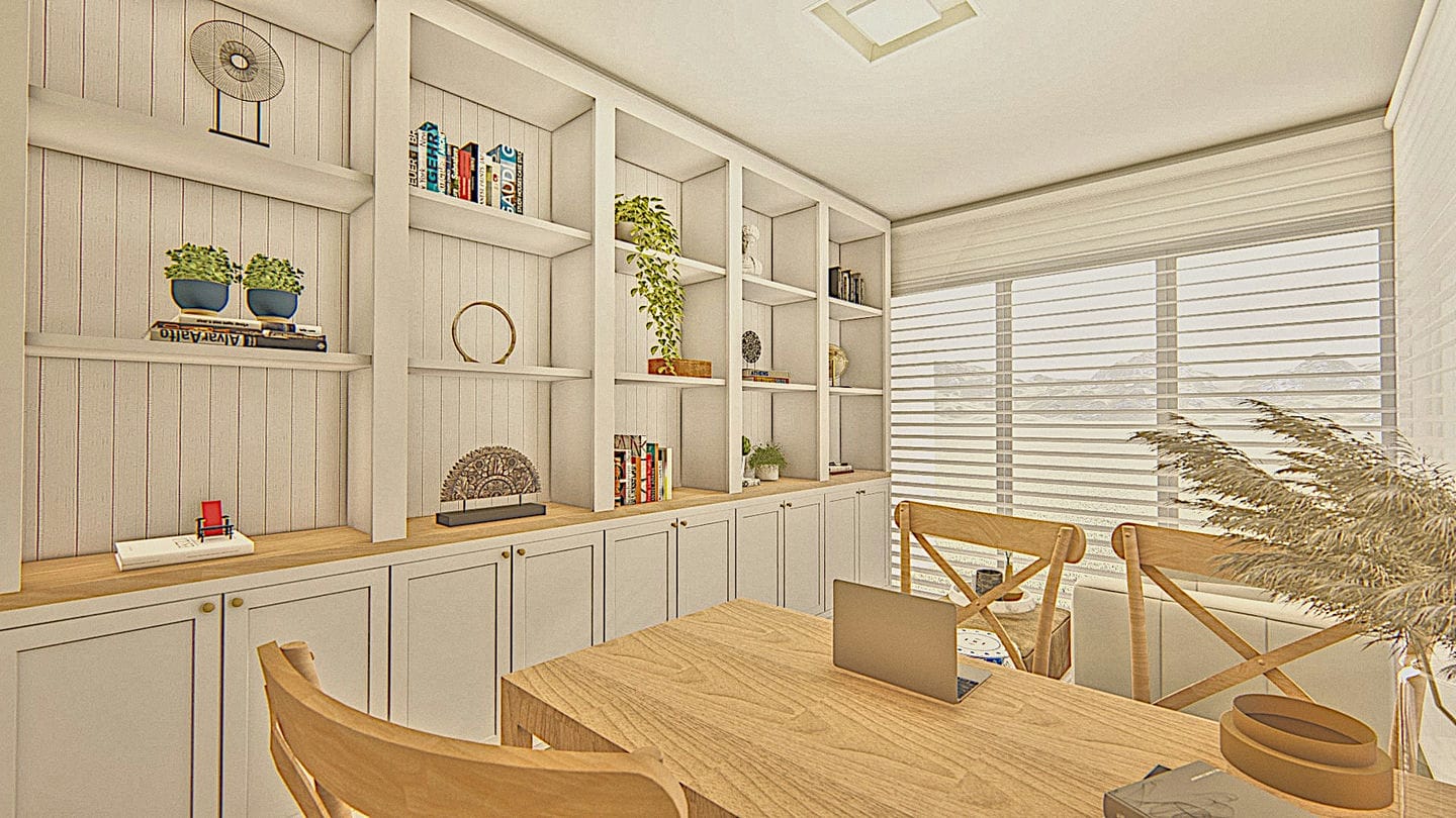 Os nossos clientes visualizam o ambiente projetado, com todas as cores e todos os materiais para pisos e paredes, mobiliários e adornos, antes mesmo de darmos início a qualquer execução de obra. Isso economiza tempo e recursos com compras assertivas e pensadas para o local.